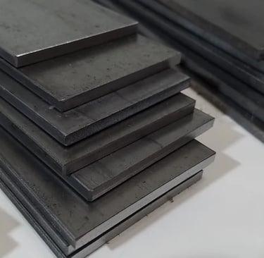 1084. This high carbon steel is a good balance between weight and durability. It will hold a sharp edge under high stress and requires less frequent sharpening. This steel welds well with nickel alloys to make gorgeous Damascus patterns.