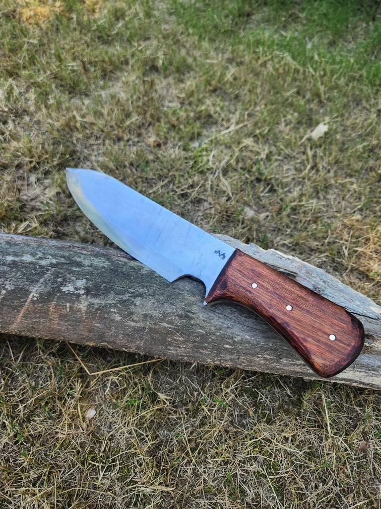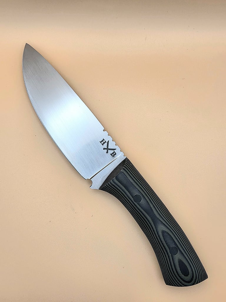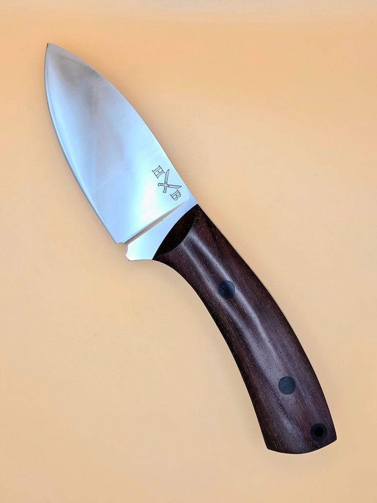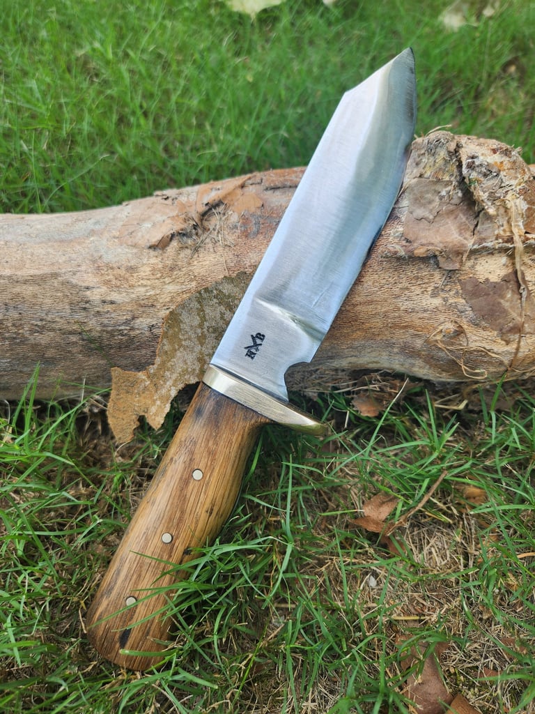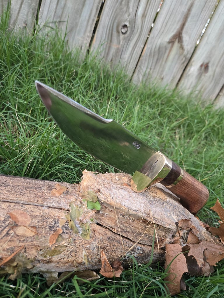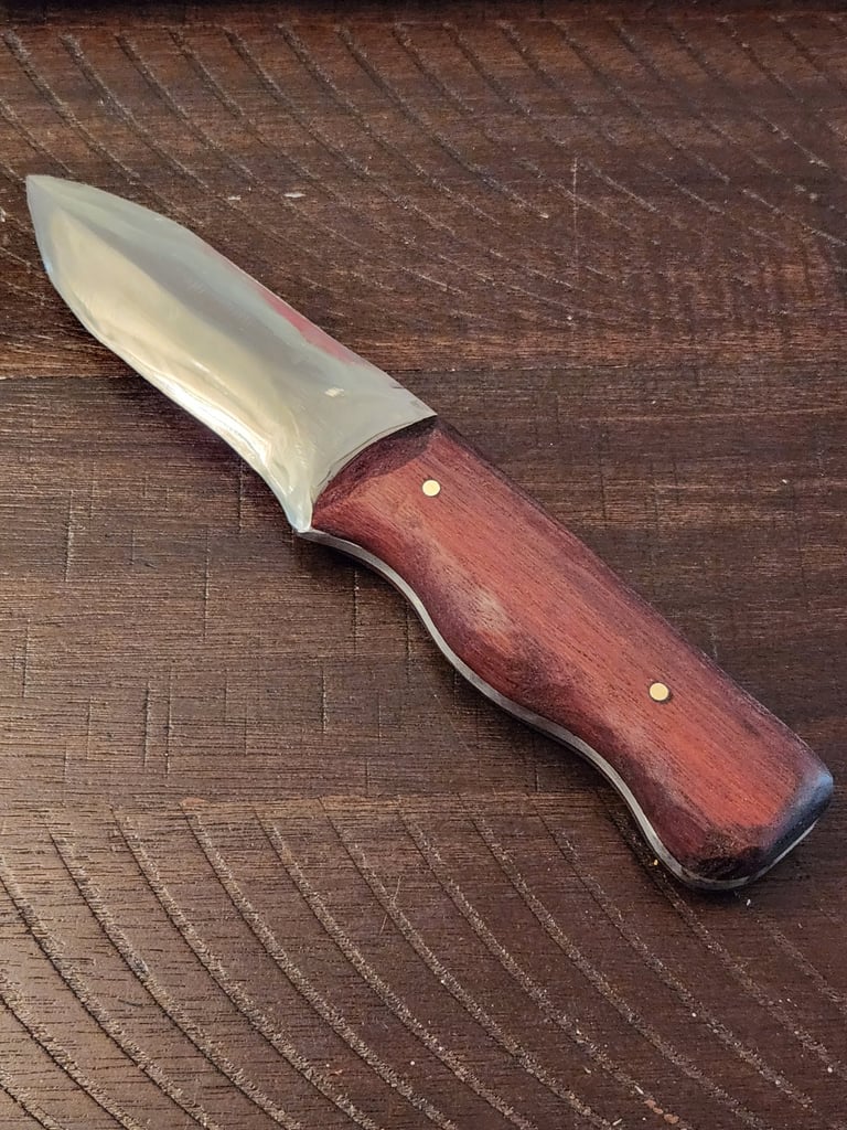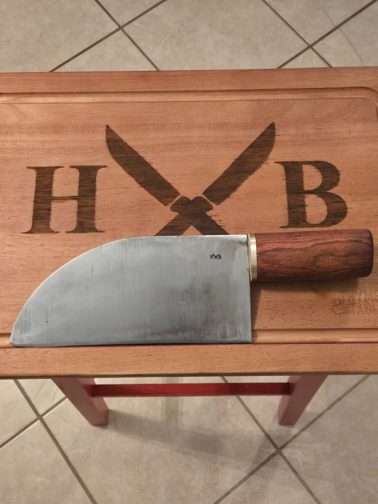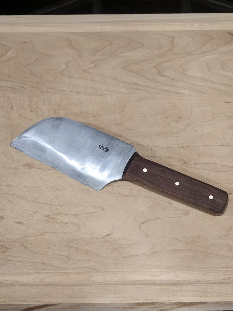 The newest member of the shop, A.J., was born in 2023. While taking time off from work to help Sara recover and to bond with A.J., Joe began watching the History Channel's hit TV show, Forged in Fire. Joe and A.J. spent many hours day after day watching, learning, and planning how they could do it themselves. In December of that year, Sara believed enough in Joe to send him to an introduction to bladesmithing class. It was all over after that. Joe was hooked, and knew he needed to start his own shop. Joe started on his first knife on his back deck with a charcoal grill for a forge, a rotary tool, and a woodworking belt sander. This humble shop was the inspiration for our name today. An old saying posits that from humble beginnings come mighty things. From the shop previously known as Humble Beginnings Custom Knives come high quality, gorgeous pieces that blend art and functionality.