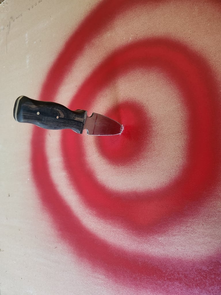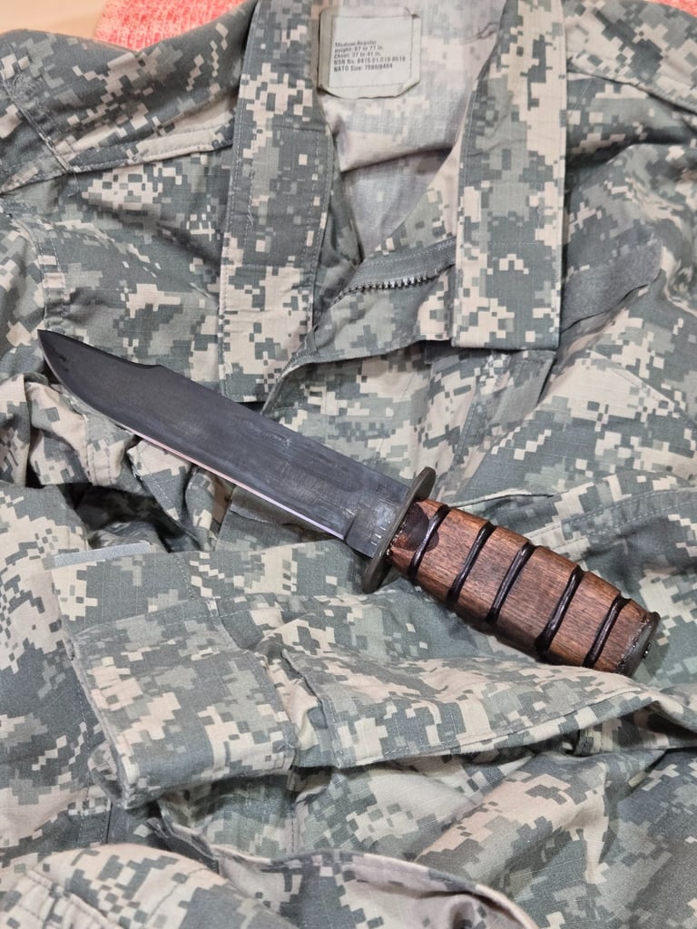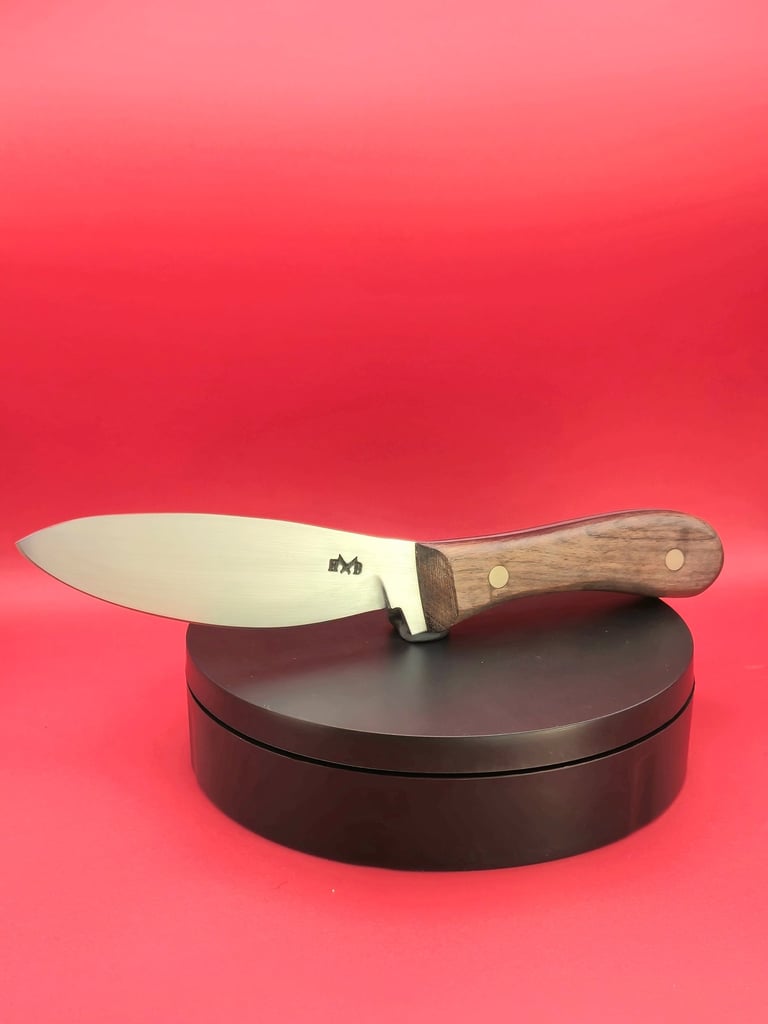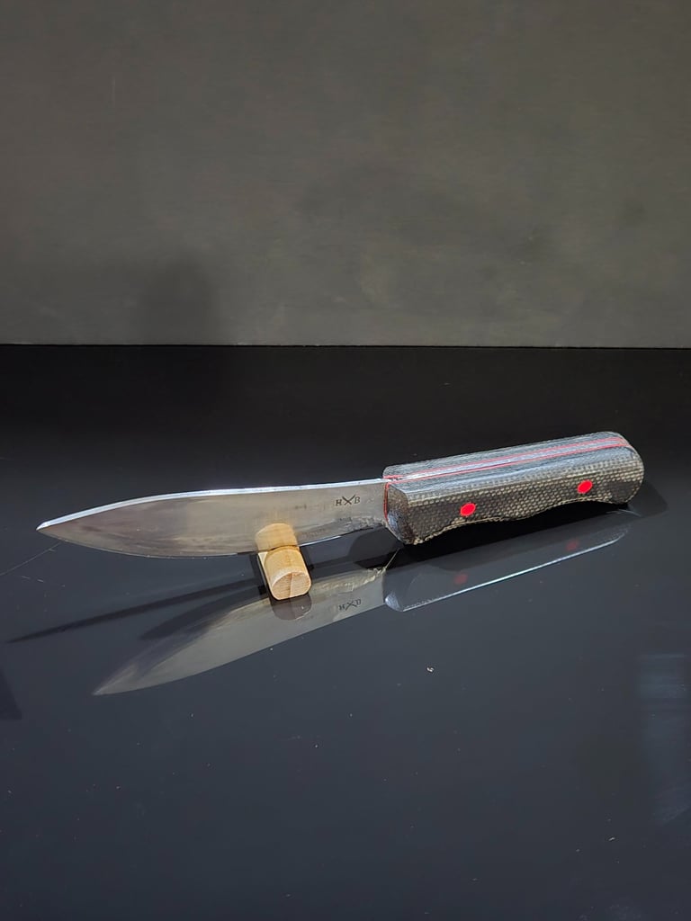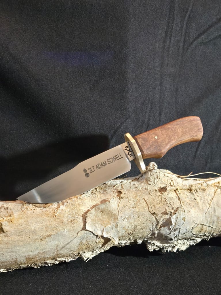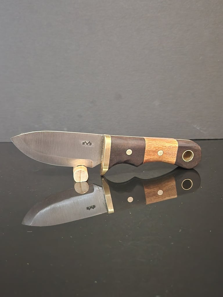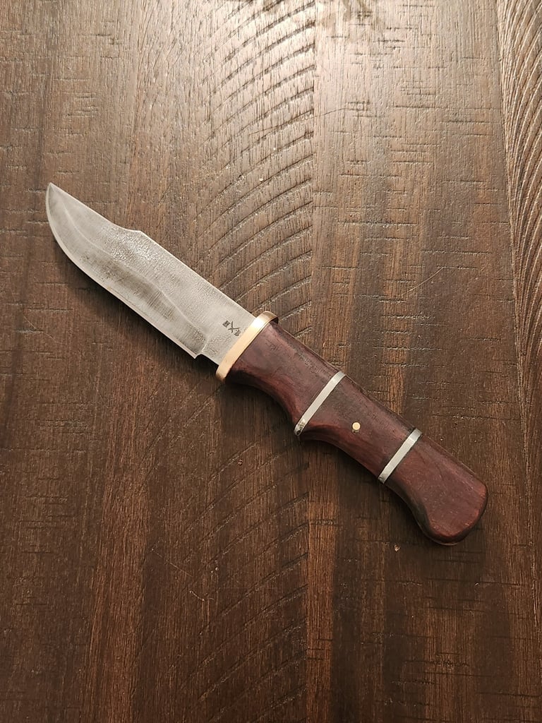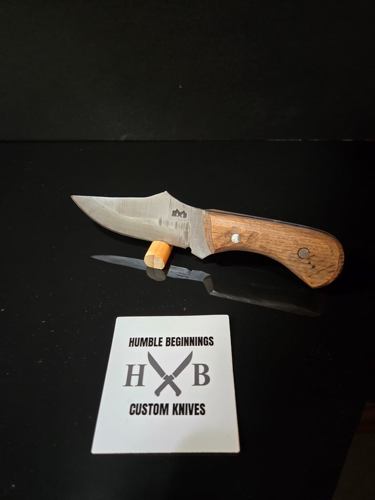 The newest member of the shop, A.J., was born in 2023. While taking time off from work to help Sara recover and to bond with A.J., Joe began watching the History Channel's hit TV show, Forged in Fire. Joe and A.J. spent many hours day after day watching, learning, and planning how they could do it themselves. In December of that year, Sara believed enough in Joe to send him to an introduction to bladesmithing class. It was all over after that. Joe was hooked, and knew he needed to start his own shop. Joe started on his first knife on his back deck with a charcoal grill for a forge, a rotary tool, and a woodworking belt sander. This humble shop was the inspiration for our name today. An old saying posits that from humble beginnings come mighty things. From the shop previously known as Humble Beginnings Custom Knives come high quality, gorgeous pieces that blend art and functionality.